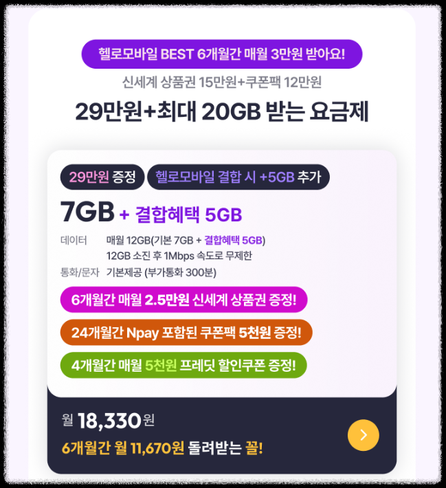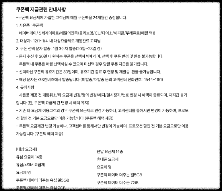 저는 위의 쿠폰팩 요금제를 가입했는데요.