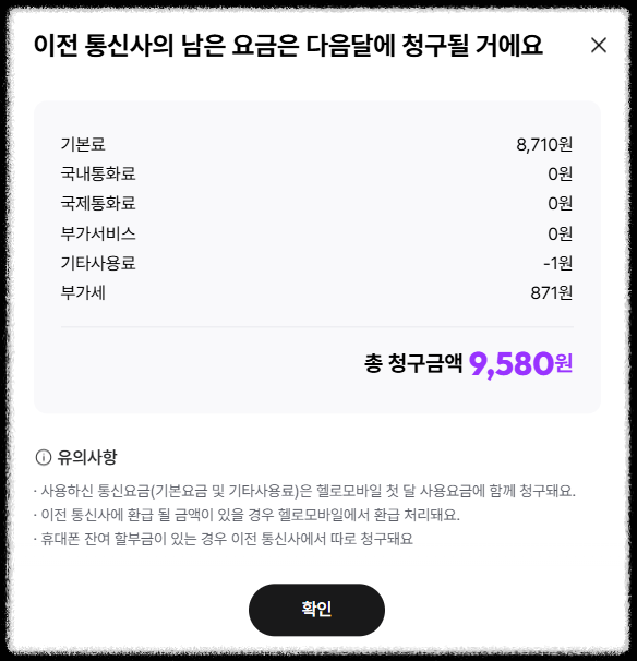 아래처럼 이전통신사 청구요금도 안내가 되네요.