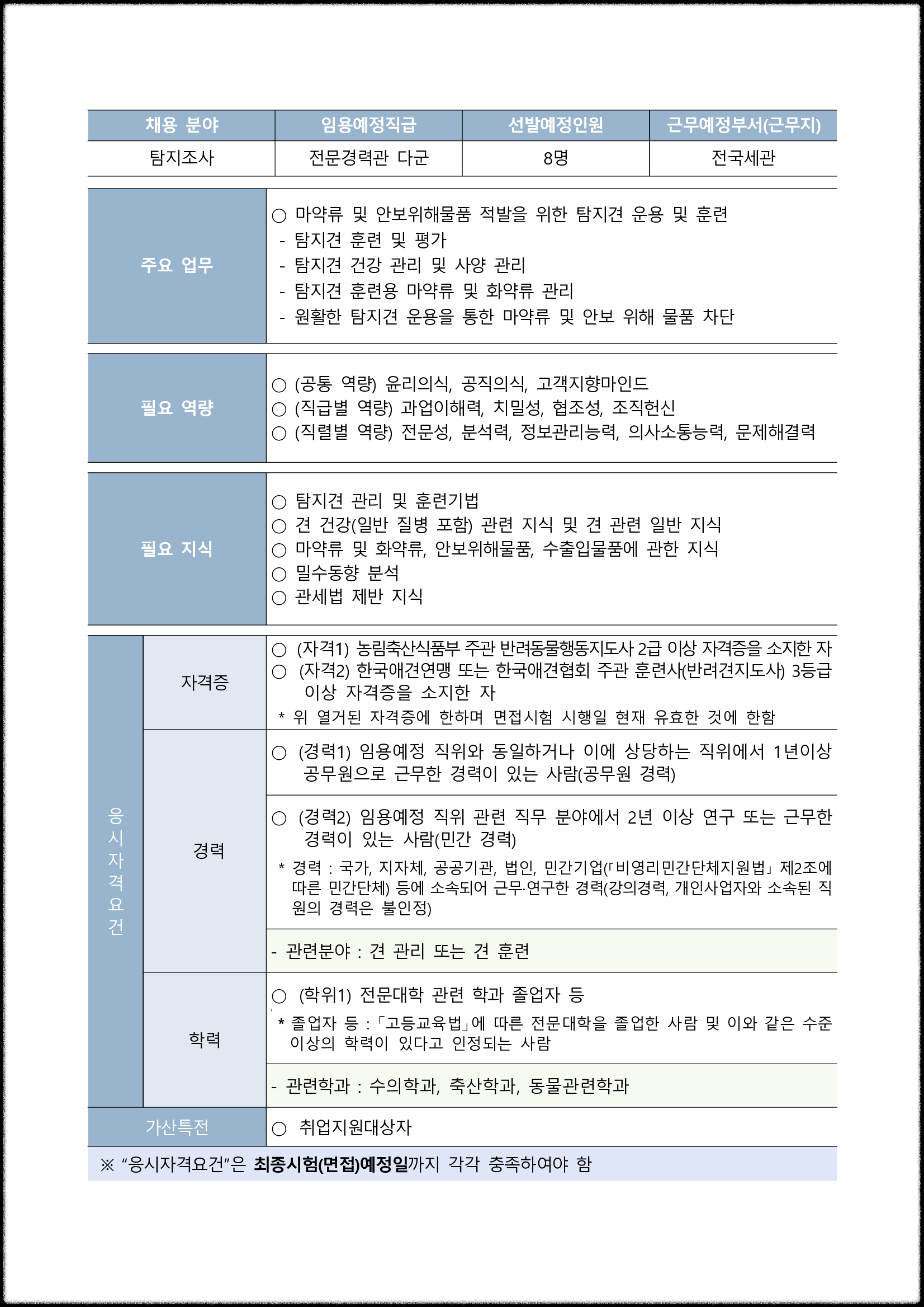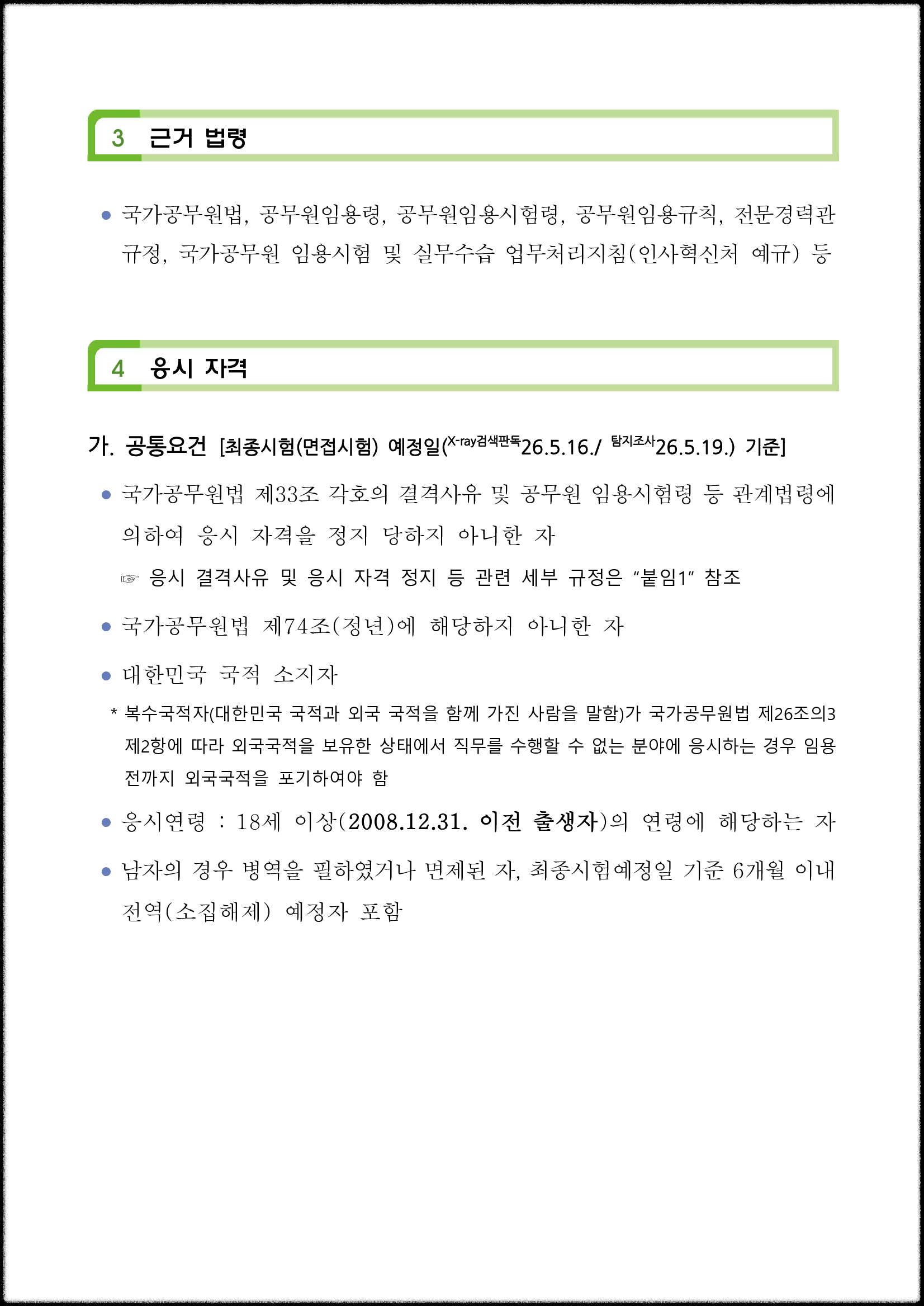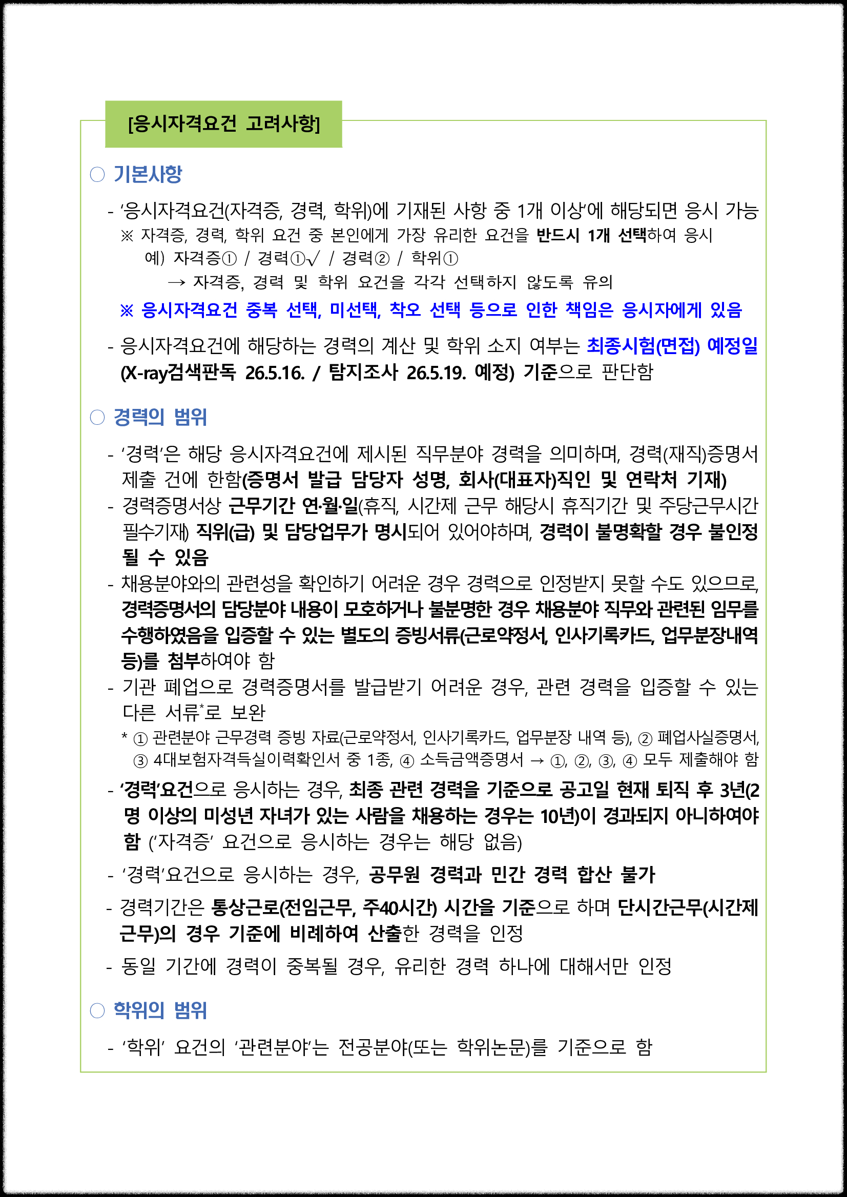 응시자격요건 기준일은 최종시험(면접) 예정일입니다.