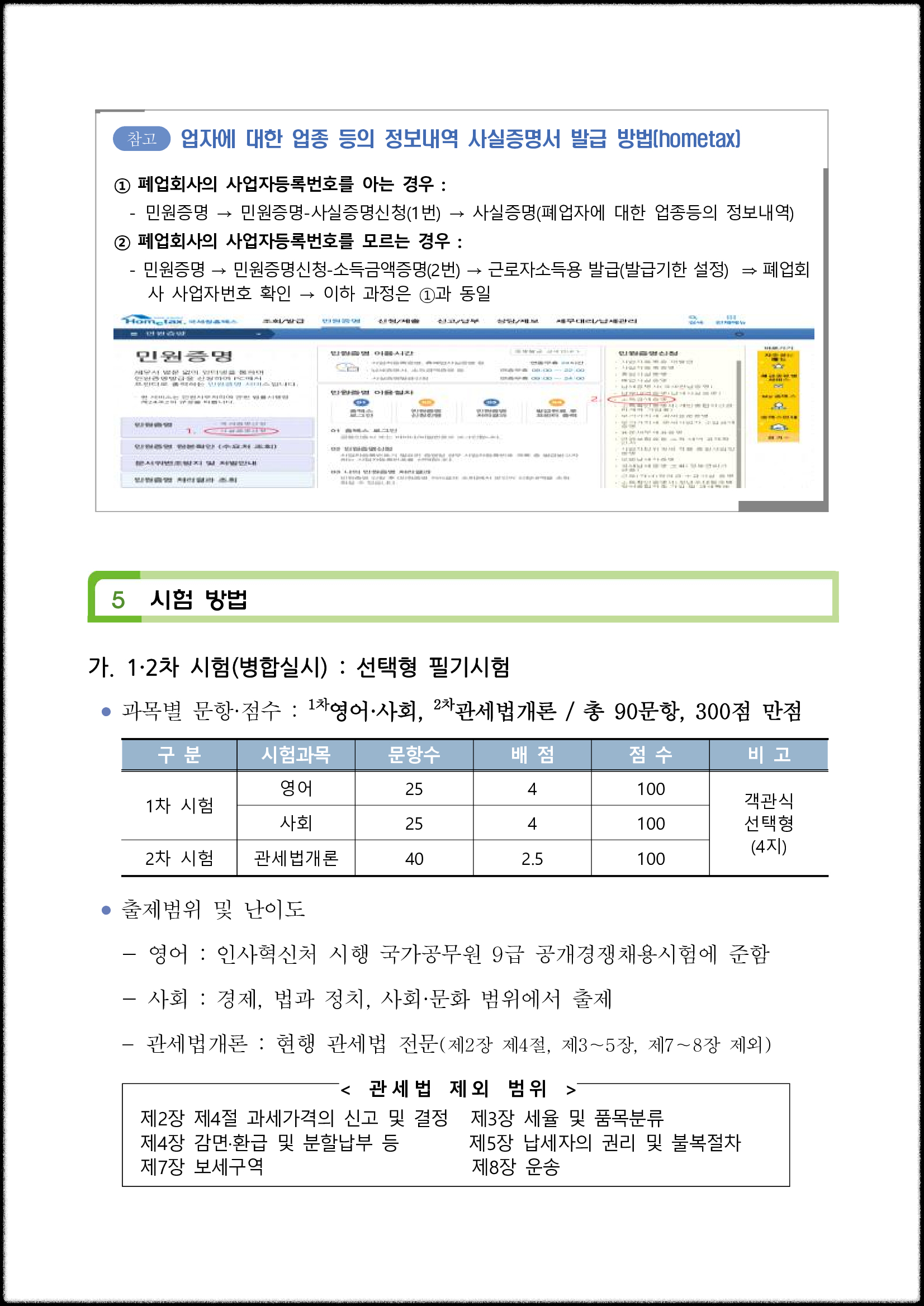 시험은 영어, 사회, 관세법개론 3과목입니다.