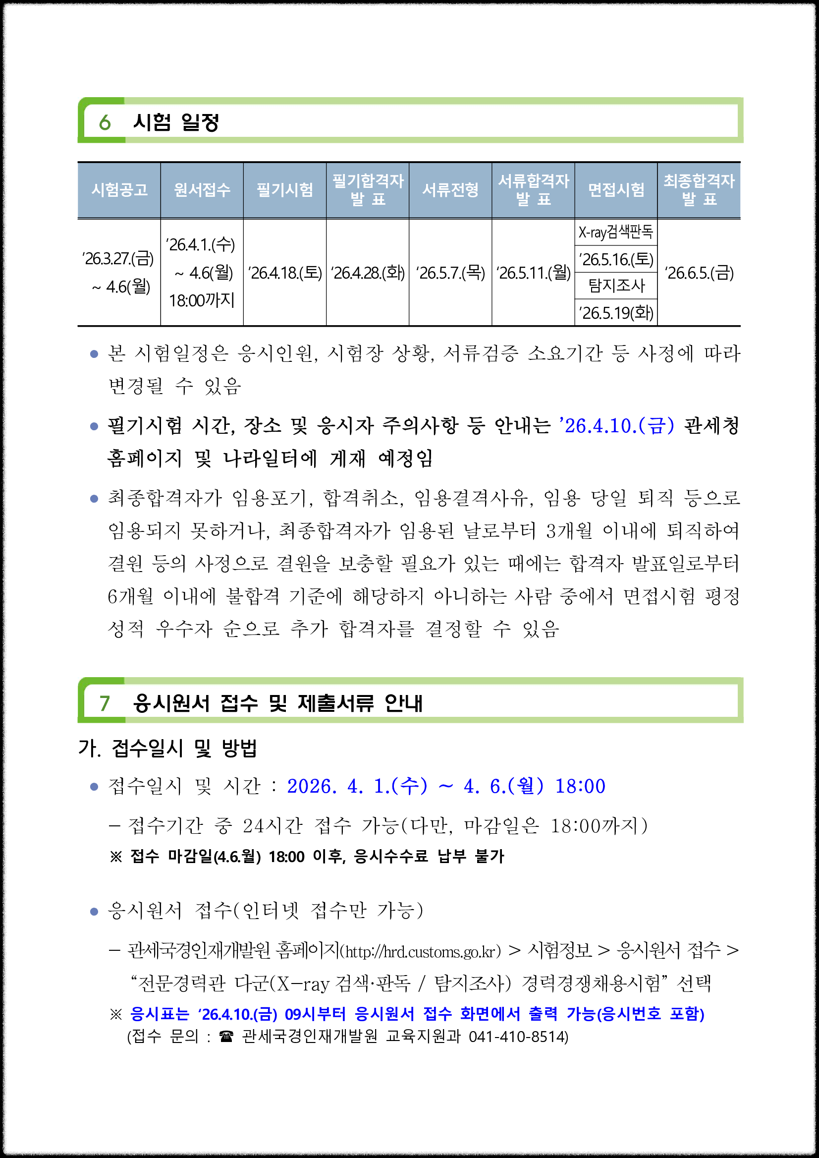 시험 원서접수는 4.1 ~ 4.6